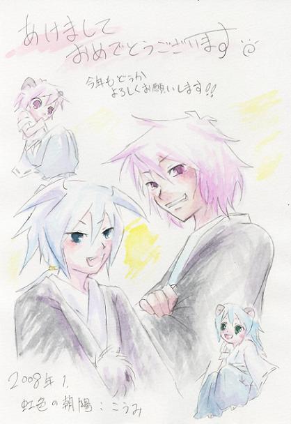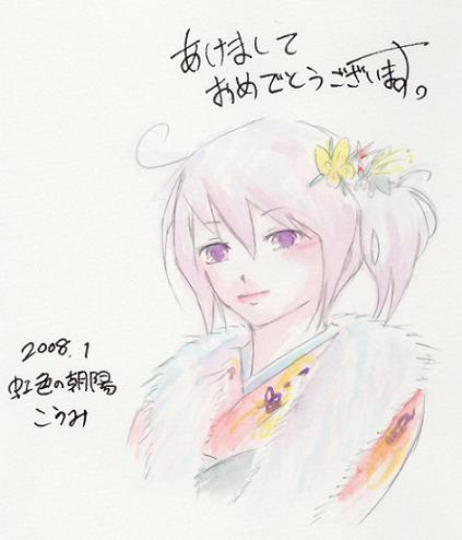 上の絵は年賀絵として4日までフリー配布します。色など薄いですが。