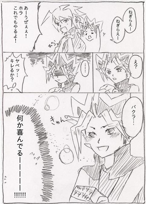 最初のエロス全開なバクラに萌え、最後辺りの子バクラとか一つくくり盗賊王とかに激しく萌え、一言では表せれない位とにかく濃いひと時でした。