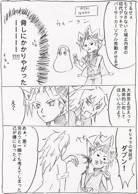 字が汚くて読めない可能性大。 ずっと気になっていた原作のこの箇所。バクラだけ聞いてなかったのでこの有り様。時間あったら絶対マリク何かしらやってたと思うよ。飼い慣らすとか言ってたしね!R指定な意味でね!